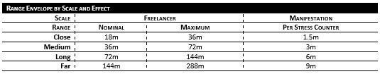 Ontometric manifestations and abilities have a range of effect. Normally this range is modified by the number of stress counters the wyrd has when they use the power. This is covered in a bit more detail on page 276.