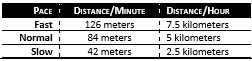 While traveling in a group on foot, they usually take on the pace of the slower of the group. Below is a table to aid in figuring out how far a team can travel in an amount of time.