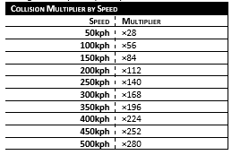 Collisions at full cruise speed is devastating. Instead of multiplying it by the momentum counters, the collision damage is multiplied by the speed of the vehicle itself.